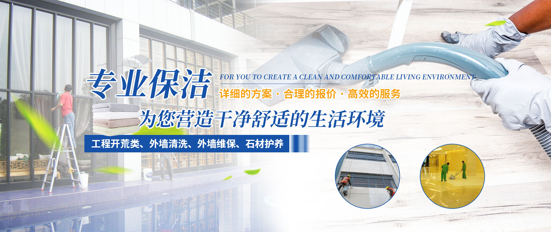 四川梓淇清潔服務(wù)有限公司,是一家從事物業(yè)管理,外墻清洗,外墻維保,綜合類開(kāi)荒保潔企業(yè)公司。   專業(yè)從事物業(yè)管理、工程開(kāi)荒類、外墻清洗、外墻維保、石材護(hù)養(yǎng)服務(wù)。公司有正規(guī)培訓(xùn)、擁有專業(yè)的保潔隊(duì)伍;齊全的清潔設(shè)備;規(guī)范的作業(yè)流程;主動(dòng)的服務(wù)意識(shí)。   秉承“環(huán)保、健康、科技、創(chuàng)新、專業(yè)”的服務(wù)理念,為您提供詳細(xì)的施工方案,合理的報(bào)價(jià),高效的服務(wù),全力為客戶創(chuàng)建一個(gè)綠色環(huán)保、清新的環(huán)境,我們的服務(wù)宗旨是:只要您一個(gè)電話,我們將為您營(yíng)造一個(gè)干凈舒適的生活環(huán)境。